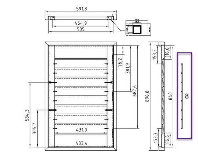 The second section (red) is the selected frame choice - face fit is another term for an outside mount.